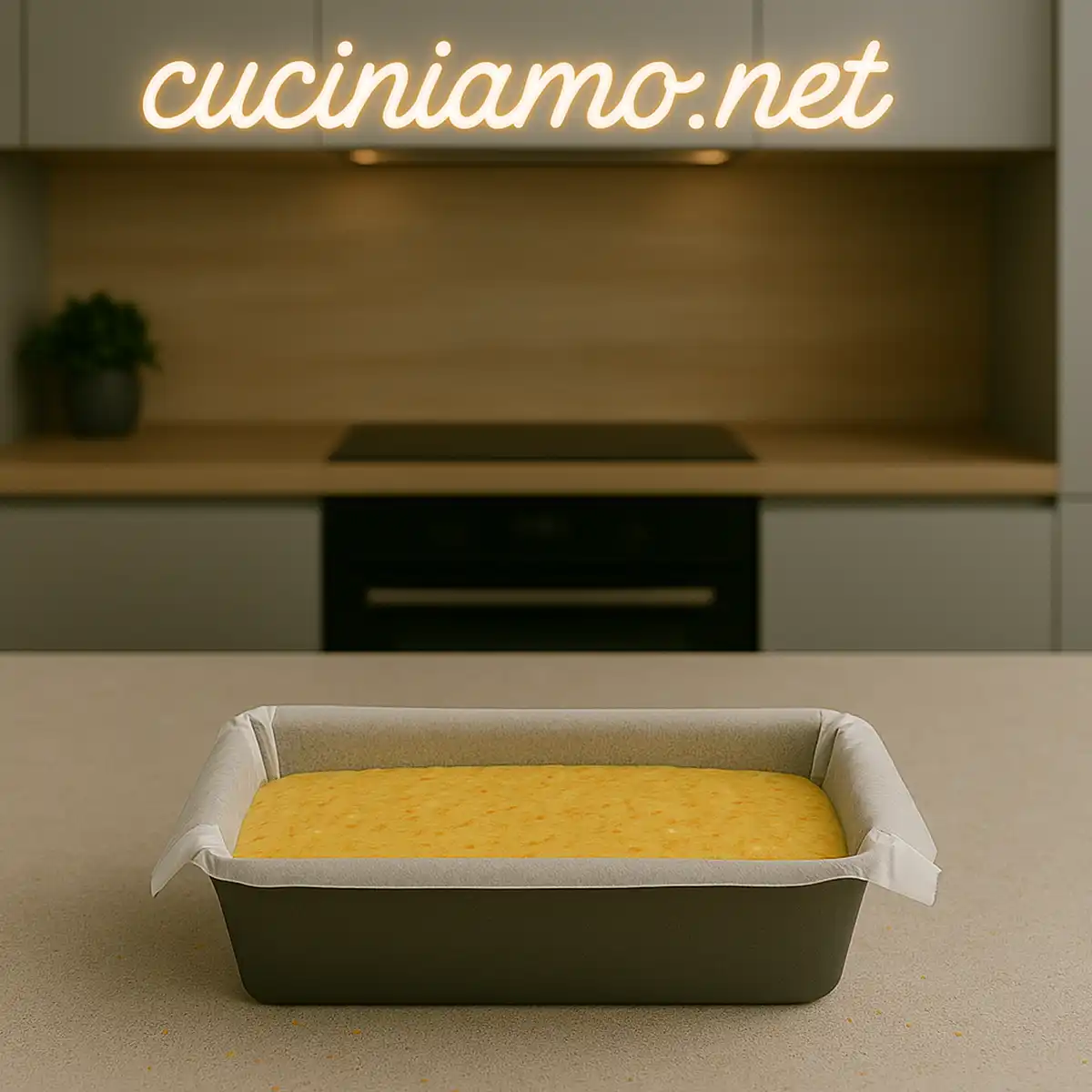 🟧 Rivestiamo uno stampo da plumcake con carta forno, oppure lo imburriamo e infariniamo per bene. Versiamo dentro l’impasto, livelliamo leggermente la superficie e diamo due colpetti sul piano per eliminare eventuali bolle d’aria. Personalmente preferisco sempre usare la carta forno ed il motivo è semplice: dopo potrete staccare subito il plumcake e soprattutto lo stampo sarà più facile da pulire 😁